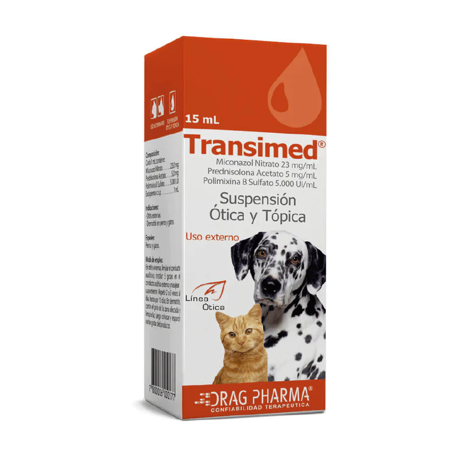 Transimed se indica en el tratamiento de otitis externas y dermatitis causadas por